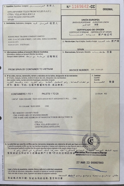 1. Minh bạch từ khâu nhập khẩu: Mỗi lô hàng đều có hồ sơ hải quan, mã container, giấy tờ chứng minh rõ ràng xuất xứ từ Italy hoặc Tây Ban Nha.