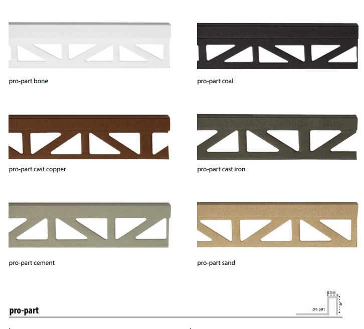 Thanh ốp trang trí cho gạch ốp tường ceramic, thích hợp để cắt góc và các đường chuyển tiếp giữa các viên gạch ceramic. Thanh ốp Metal Collection có lớp hoàn thiện kim loại đặc biệt cho mỗi thanh ốp, được mạ điện, và hình dạng góc vuông, cho phép lắp ghép hoàn hảo với gạch ceramic đã được chỉnh lưu mà không cần mối nối. Đặc biệt